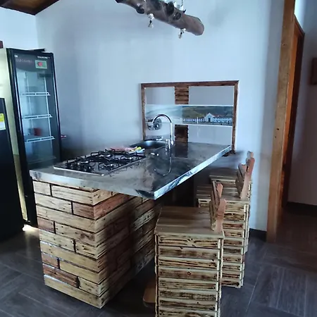 A szálláshely konyhai felszereltsége kiegészül hűtővel és konyhai edényekkel, amelyet az étkezőben biztosítanak.